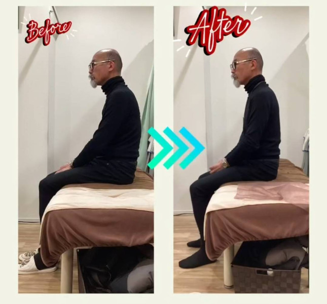 骨盤や背骨の歪みが整ったことで、姿勢も大きく改善されました。施術前は猫背気味だったK様ですが、施術後は背筋が自然と伸び、呼吸も楽になったと感じられたそうです。
