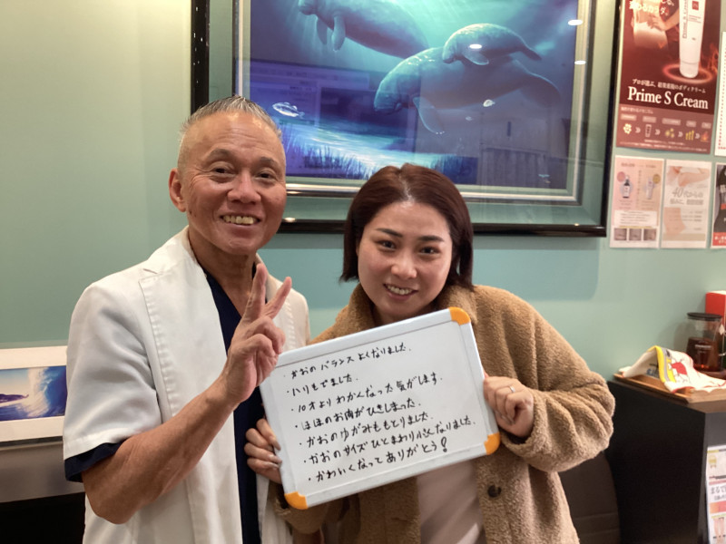 K様は、「顔が小さくなっただけじゃなくて、肌もツヤツヤになって、本当に嬉しいです」と喜んでくださいました。